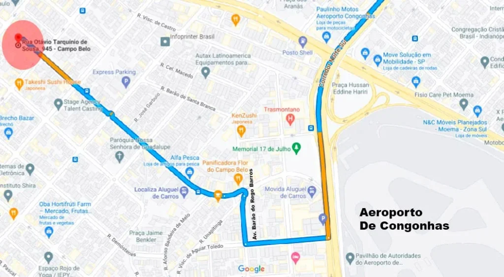 Seguindo Pela Rua Vieira de Moraes sentido aeroporto, Vire à esquerda na Rua Conde de Porto Alegre, Vire à esquerda na Rua Otávio Tarquínio de Sousa Siga até o número 945.